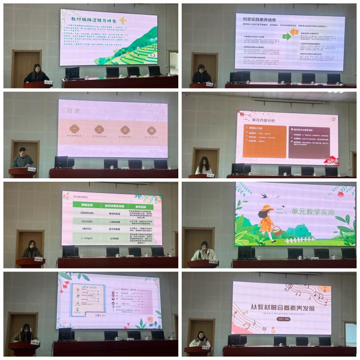来自市直学校的8位教师对人音版义教段新教材进行单元解读。小学二年级下册围绕四个单元内容展开教学解析;小学三年级下册聚焦四个单元进行单元教学阐述。各位教师结合教材特点与学段实际,呈现了系统细致的研读成果。